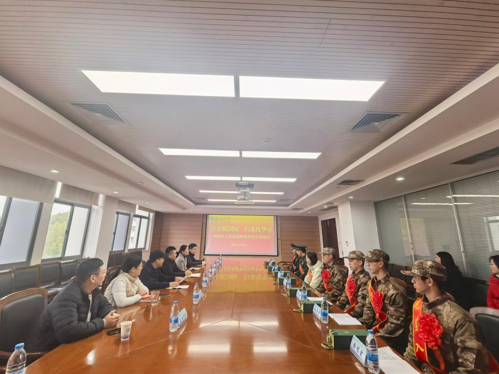 与会领导对退役复学学生表示热烈欢迎,并祝贺即将投身军营的入伍新兵,勉励大家珍惜机遇、砥砺前行,在不同岗位上展现青年担当,为国防和学校发展贡献力量。